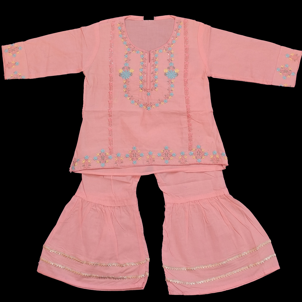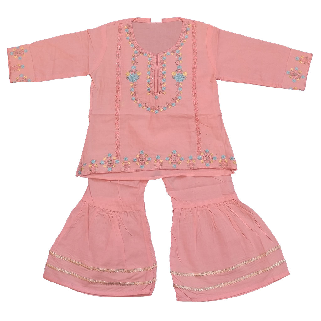 Peach Embroided Frock with shararah
