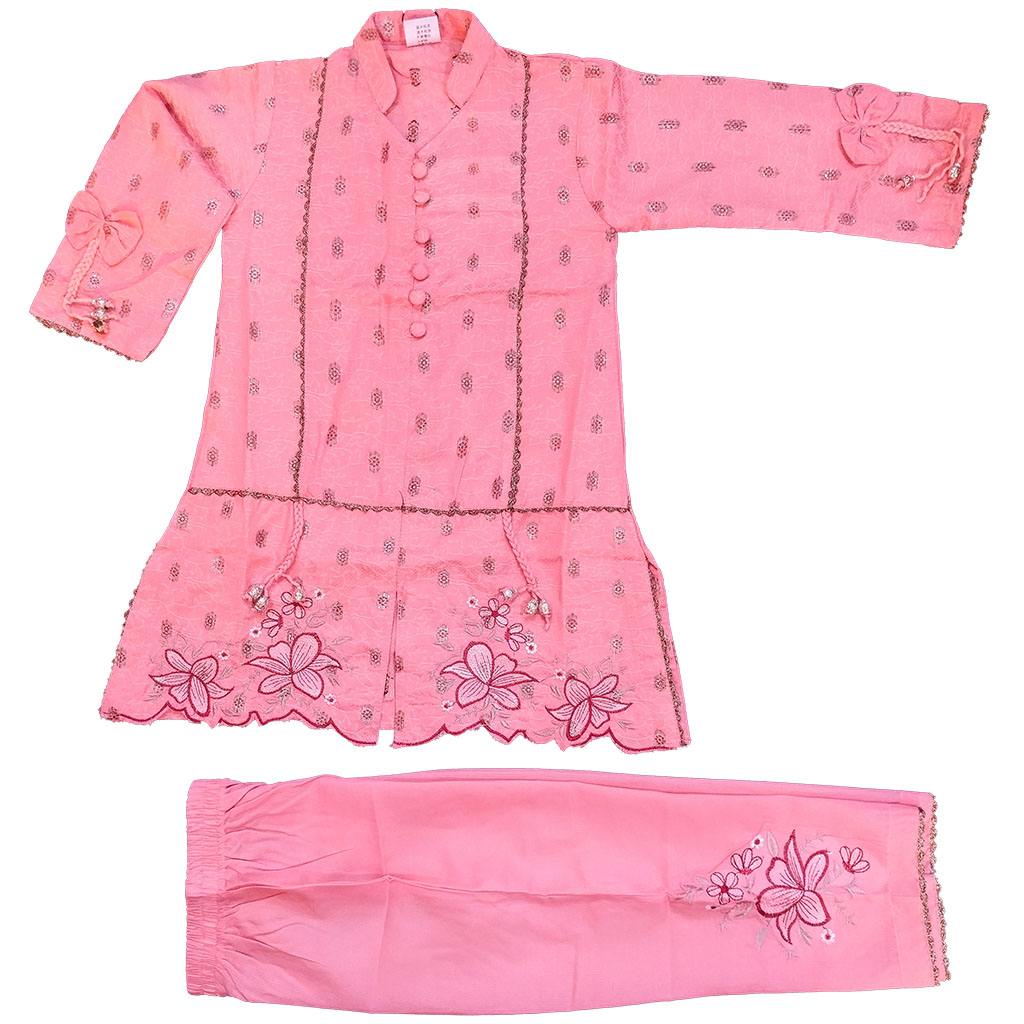 Pink Embroided self print Kurta with Trouser