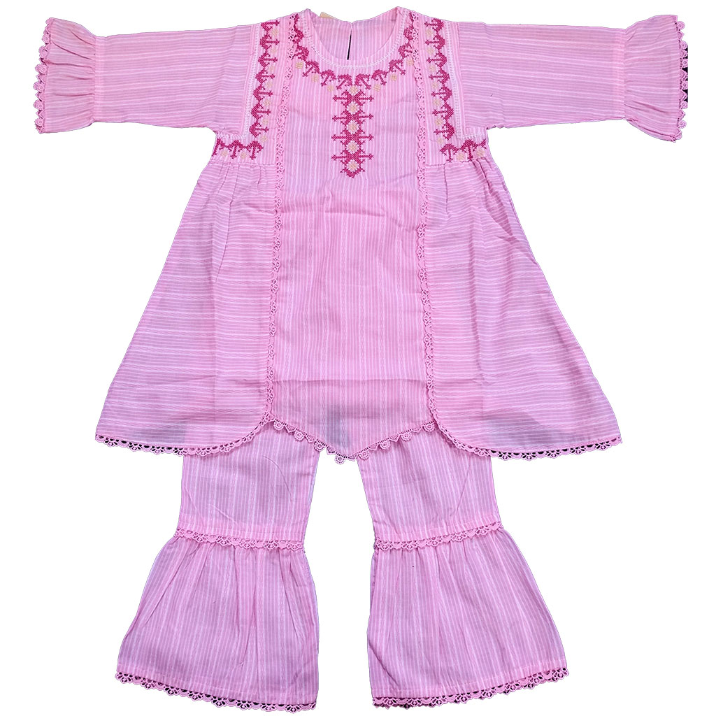Pink linning embroided frock with trouser