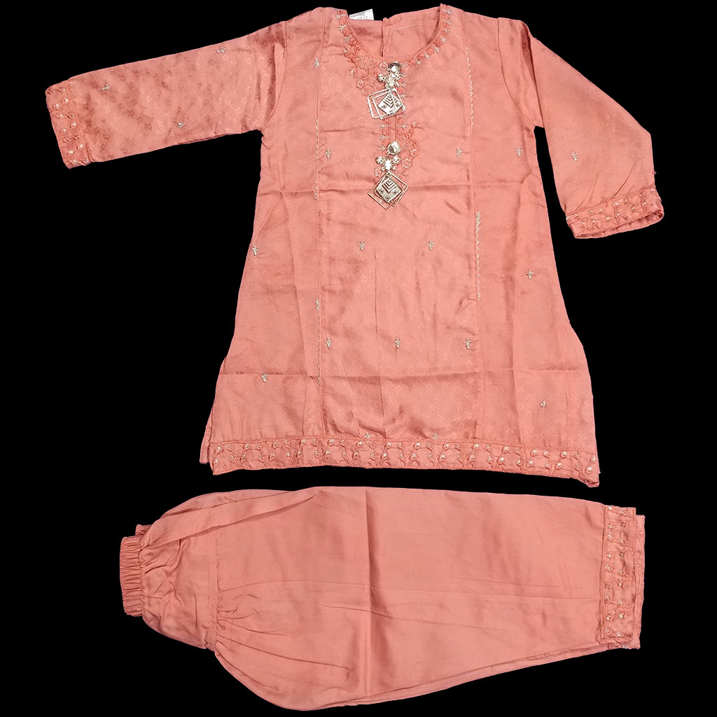 Pink Peach Embroided self print A-line shirt with shalwar
